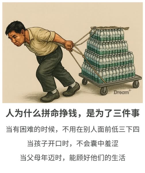 人为什么拼命赚钱?不是为了炫耀,也不是为了贪欲,而是为了在困难来临时,不必低声下气;为了孩子想要的时候,能挺起胸膛满足他们;为了父母年老的时候,让他们的生活过得安心而体面。赚钱的背后,是责任、是担当、是爱。当你觉得累时,想想你拼命的意义,你...